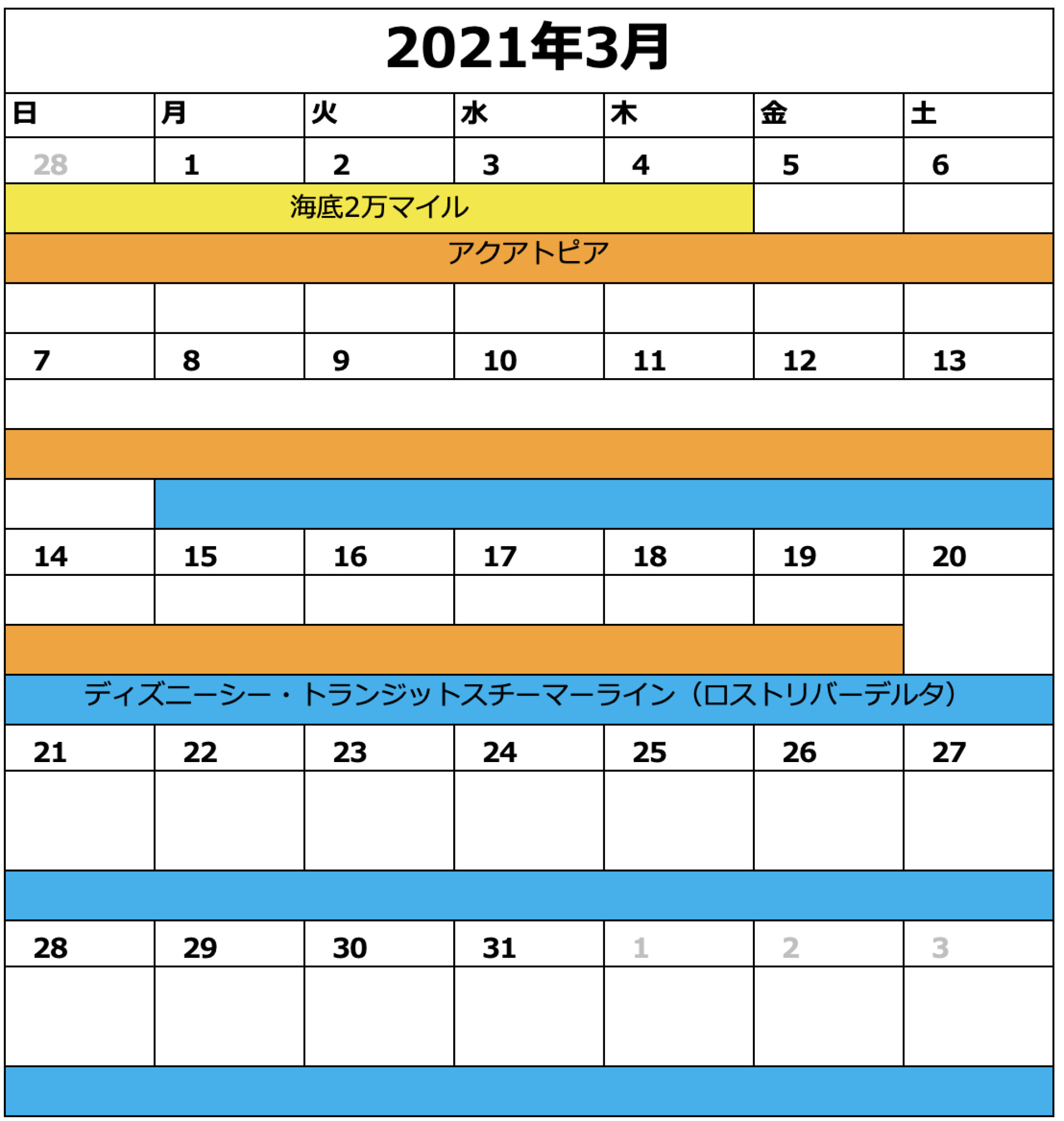 シーの休止情報カレンダー2月 キャステル Castel ディズニー情報